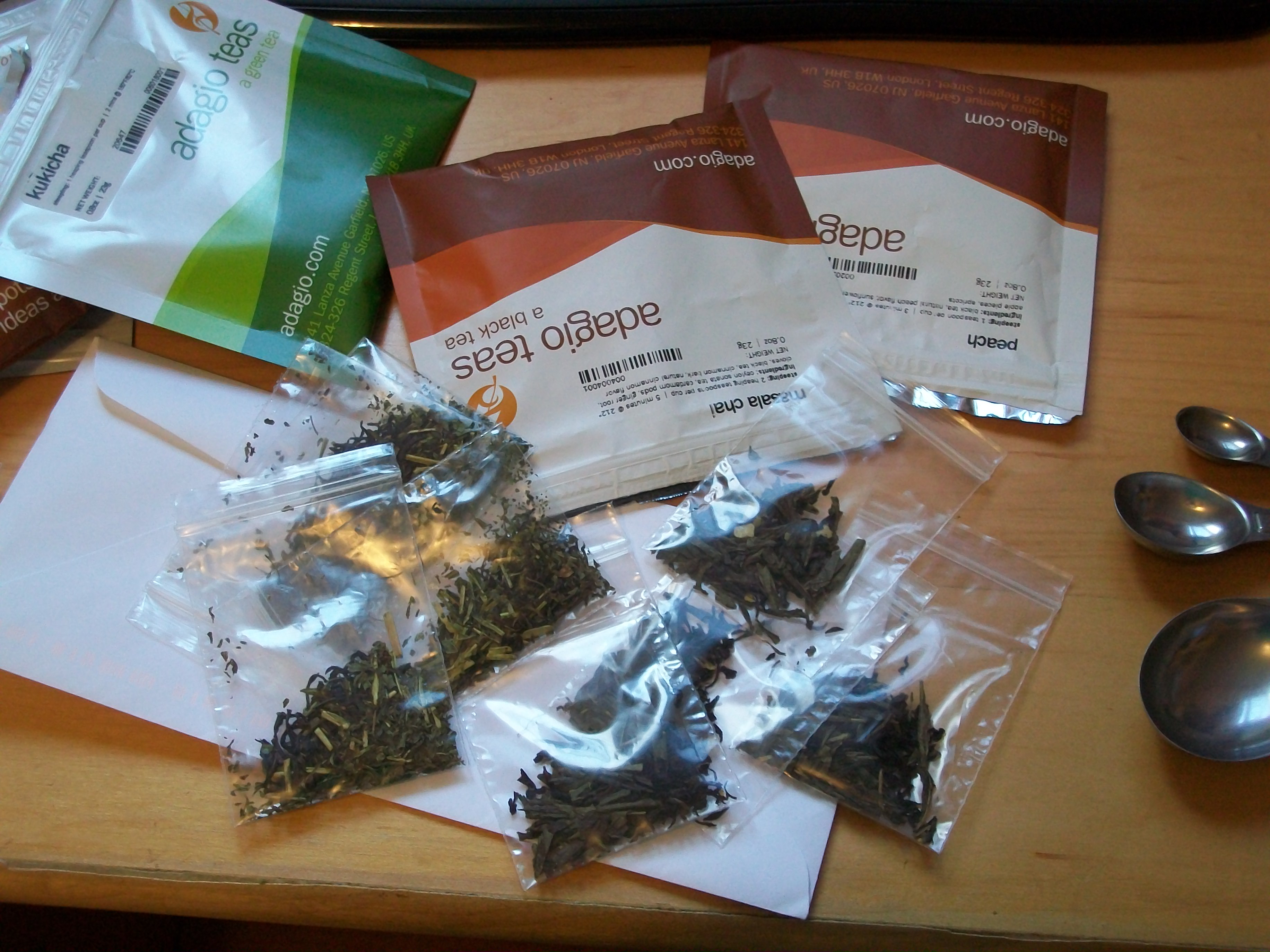 - TEA. SO MUCH TEA. I ordered about 18 oz. so I can make at least 300 little sample baggies. And that only for about 24 or so boxes. BAH.