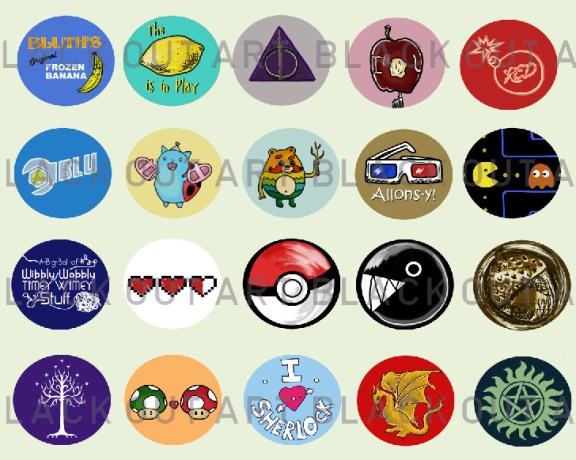Finally! I am pleased to announce Black Out Art now has fandom buttons available in the Etsy shop! These were something I’ve been wanting to make for a very long time, but trying to find an affordable way to make buttons AND coming up with great designs is always a challenge. Let’s just say the challenge has been an over all success, since these are going like hotcakes. I’ll make sure to have these are stocked up at any events I plan to sell at!
