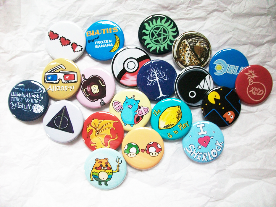 Make sure to check out all these buttons! You can buy these individually, in fandom sets, or customise a 3-pack set! I’ll be releasing 10 more designs by the end of the summer, so if you have any ideas or suggestions for buttons, please let me know! 🙂
